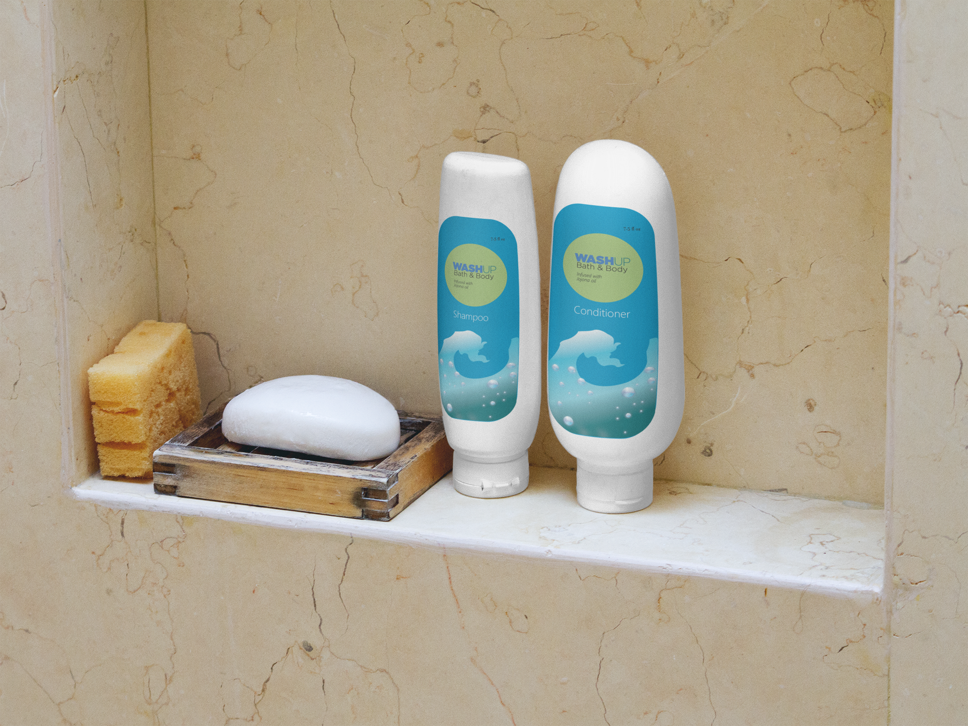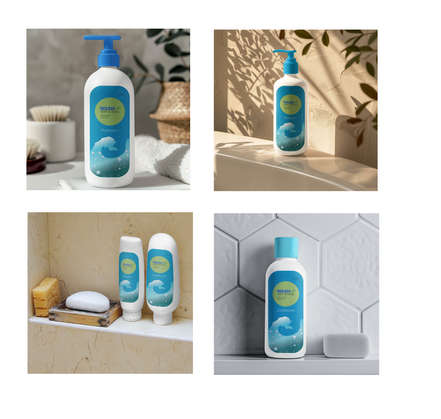 For the color palette, I chose blue to represent the women’s lotion and body wash. This color helps the product stand out while maintaining a cohesive visual identity for the WashUp line. Blue conveys calmness, freshness, and cleanliness, which supports the soothing and uplifting qualities of the product. I applied the color consistently across the packaging to create a strong visual presence and ensure it fits naturally within the brand family. The palette also works well with the wave and sunlight motif in the sketches, adding brightness, movement, and a refreshing feel. Overall, the goal was to create packaging that feels modern, eye catching, and aligned with the product’s calming and energizing experience.
